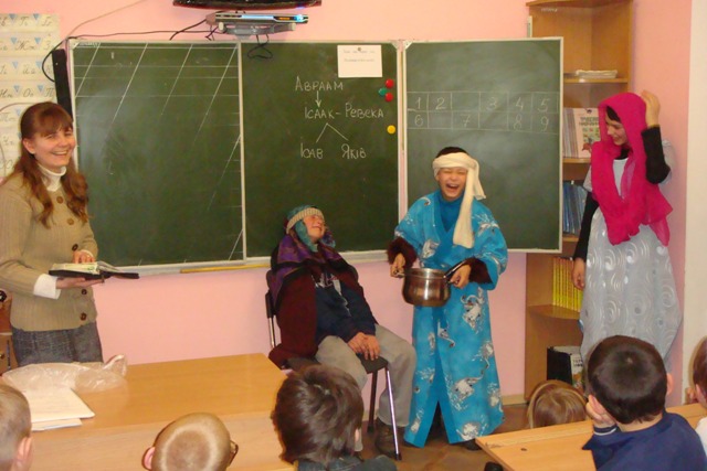 Here children have to say what is inside of bags.It was hard for them.We explain to them that people often deceive of blind people what is sin before God.Their life is real heavy.Same Isaac was blind.His son deceived him.
